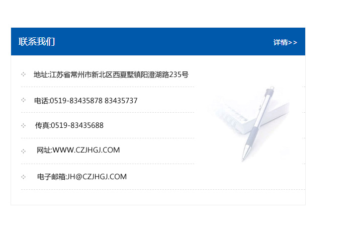 傳真:0519-83435688    郵編:213135    網址:WWW.czjhgj_com.bqldkj.com    電子郵箱:JH@czjhgj_com.bqldkj.com